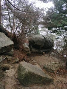 ↑この細い岩と社の間を潜り抜けた場所に祠があります。