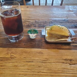 この日はコーヒーとケーキを注文しました。コーヒーは香りがよく、ケーキは甘さがやさしくて、気負わず楽しめるおいしさ。古民家の雰囲気とよく合っていて、ほっとできる時間になりました。